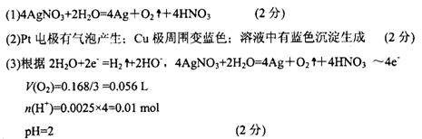 (3)室溫下,若從電解開始到結束,A、B裝置中共收集到氣體0.168 L(標況),若電解過程中無其他副反應發(fā)生,經(jīng)測定電解后A中溶液體積恰為1000mL,求A溶液的pH。