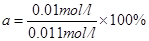 CO2+H2;在827℃時的平衡常數(shù)是100,如果反應(yīng)開始時,一氧化碳和水蒸氣的濃度都是0.011mol/L,計算:一氧化碳在此反應(yīng)條件下的平衡轉(zhuǎn)化率。
