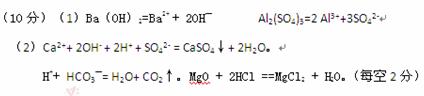 (10分)(1)寫出下列物質(zhì)在水溶液中的電離方程式