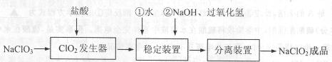 亞氯酸鈉(NaClO2)是一種重要的含氯消毒劑,常用于水的消毒以及紡織高漂白。過氧化氫法生產(chǎn)亞氯酸鈉的流程圖如下