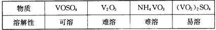 部分含釩物質(zhì)在水中的溶解性如下表所示: