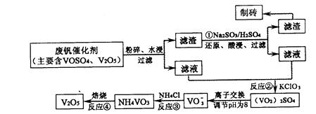 隨著材料科學的發(fā)展,金屬釩及其化合物得到了越來越廣泛的應(yīng)用,并被譽為“合金的維生 素”。為回收利用含釩催化劑(含有V2O5、VOSO4及不溶性殘渣),科研人員最新研制了一種離子交換法回收釩的新工藝,回收率達91.7%以上。