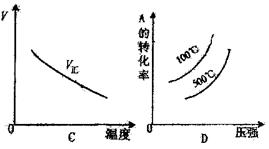 C、A的轉(zhuǎn)化率增大 D、C的體積分數(shù)增加 ![]()