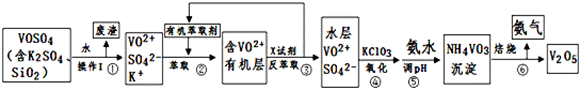 工業(yè)上設(shè)計(jì)將VOSO4中的K2SO4、SiO2雜質(zhì)除去并回收得到V2O5的流程如下:
