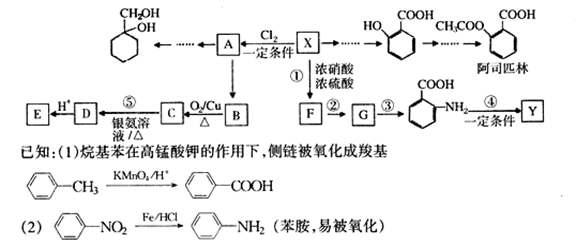 芳香烴X是一種重要的化工原料,其相對(duì)分子質(zhì)量為92,現(xiàn)以它為初始原料設(shè)計(jì)出如下轉(zhuǎn)化關(guān)系圖(部分產(chǎn)物、合成路線、反應(yīng)條件略去)。其中A是一氯代物,F(xiàn)的分子式為C7H7NO2,Y是一種功能高分子材料。