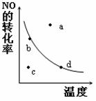 2NO2(g)中NO的平衡轉(zhuǎn)化率與溫度的關(guān)系。圖中標(biāo)有a、b、c、d四點(diǎn),其中表示未達(dá)到平衡狀態(tài),且v(正)>v(逆)的點(diǎn)是 。