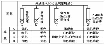 將SO2通入顯紅色的酚酞試劑中,發(fā)現(xiàn)紅色消失,主要是因?yàn)镾O2( )