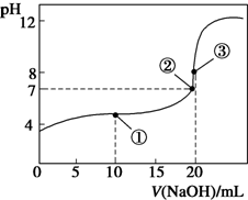 常溫下,用0.1000mol/LNaOH溶液滴定20.00mL0.1000mol/L CH3COOH溶液所得滴定曲線如圖.下列說(shuō)法正確的是( 。