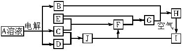 A、B、C、D、E、F、G、H、I、J均為中學(xué)化學(xué)中常見物質(zhì),其相互轉(zhuǎn)化的關(guān)系如下圖所示: