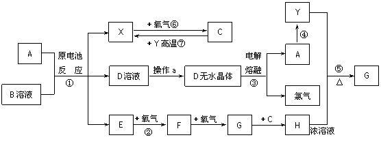 (1)反應(yīng)④為A在某種氣體中燃燒,生成單質(zhì)Y和A的氧化物,其反應(yīng)方程式為 。