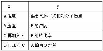 2C(氣);H<0,當(dāng)達(dá)到平衡后,改變一個(gè)條件(x),下列量(y)一定符合圖中曲線的是:( )