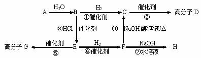 A、B、C、D、E、F、G、H八種物質(zhì)之間可發(fā)生如下一系列轉(zhuǎn)化關(guān)系(其中C常溫下是一種氣體,可作果實(shí)催熟劑):