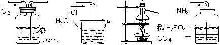 A.干燥Cl2     B.吸收HCl   C.石油的分餾   D.吸收NH3