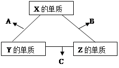 (8分)X、Y、Z三種短周期元素,它們的原子序數(shù)之和為16 。X、Y、Z三種元素常見(jiàn)單質(zhì)在常溫下都是無(wú)色氣體,在適當(dāng)條件下可發(fā)生如下圖所示變化: