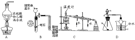 B.實驗室制乙炔并驗證乙炔發(fā)生氧化反應