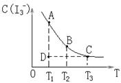 I3-(aq)+Q, 某I2、、KI混合溶液中,I3-的物質(zhì)的量濃度c(I3-)與溫度T的關(guān)系如圖所示(曲線上任何一點(diǎn)都表示平衡狀態(tài))。下列說法正確的是 ( )