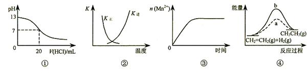 C.圖③表示10 mL 0.01 mol·L-1 KMnO4 酸性溶液與過量0.1 mol·L-1草酸溶液混合,n(Mn2+) 隨時間的變化