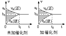 pC(g)+qD(g)的v-t圖象如下右圖,如若其它條件不變,只是在反應前加入合適的催化劑,則其v-t圖象如下右圖: