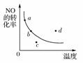 圖中的曲線是表示其他條件一定時(shí),2NO+O22NO2 ΔH<0反應(yīng)中NO的轉(zhuǎn)化率與溫度的關(guān)系曲線,圖中標(biāo)有a、b、c、d四點(diǎn),其中表示未達(dá)到平衡狀態(tài),且v正>v逆的點(diǎn)是( )