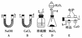 電爐加熱時(shí)用純O2氧化管內(nèi)樣品,根據(jù)產(chǎn)物的質(zhì)量確定有機(jī)物的組成。下列裝置是用燃燒法確定有機(jī)物分子式常用的裝置。