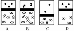 下列示意圖中,白球代表氫原子,黑球代表氦原子,方框代表容器,容器中間有一個(gè)可以上下滑動(dòng)的隔板(其質(zhì)量忽略不計(jì))。其中能表示等質(zhì)量的氫氣與氦氣的是