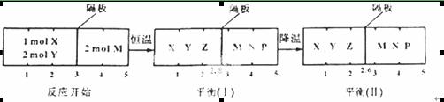 N(g)+P(g)分別在密閉容器的兩個反應室中進行,反應室之間有無摩擦、可滑動的密封隔板。反應開始和達到平衡狀態(tài)時有關物理量的變化如圖所示:![]()