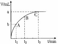 (4)某同學(xué)在50 mL一定濃度的H2O2溶液中加入一定量的二氧化錳,放出氣體的體積(標(biāo)準(zhǔn)狀況下)與反應(yīng)時(shí)間的關(guān)系如下圖所示,則A、B、C三點(diǎn)所表示的瞬時(shí)反應(yīng)速率最快的是______________________。