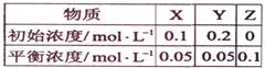 在25℃時,密閉容器中X、Y、Z三種氣體的初始濃度和平衡濃度如下表:下列說法錯誤的是: