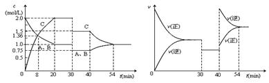 2C(g),達(dá)到平衡后,只改變反應(yīng)的一個(gè)條件,測(cè)得容器中物質(zhì)的濃度、反應(yīng)速率隨時(shí)間變化的如下圖所示。下列說法中正確是( )