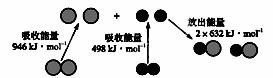 N2(g)和O2(g)反應生成NO(g)過程中的能量變化