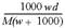 在標(biāo)準(zhǔn)狀況下,將wg A氣體(摩爾質(zhì)量為Mg/mol)溶于1L水中,所得溶液密度為dg/mL,則此溶液的物質(zhì)的量濃度為( )mol/L