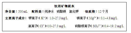 下圖是某品牌飲用礦泉水的標簽的部分內(nèi)容。下列說法正確的是![]()