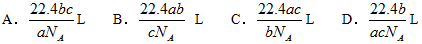 設(shè)NA為阿伏加德羅常數(shù)的值。如果a g某氣體中含有的分子數(shù)為b,則c g該氣體在標(biāo)準(zhǔn)狀況下的體積是![]()
