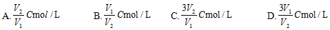 將C mol/L的AlCl3溶液V1 mL加水稀釋至V2mL,稀釋后溶液中Cl-物質(zhì)的量濃度為![]()