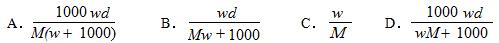 在標(biāo)準(zhǔn)狀況下,將wg A氣體(摩爾質(zhì)量為Mg/mol)溶于1L水中,所得溶液密度為dg/mL,則此溶液的物質(zhì)的量濃度為( )mol/L![]()