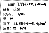 是某學(xué)校實驗室從化學(xué)試劑商店買回的硫酸試劑標(biāo)簽上的內(nèi)容。據(jù)此,下列說法正確的是![]()