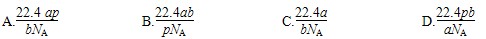 設(shè)NA為阿伏加德羅常數(shù)的值,如果ag某氣體雙原子分子的分子數(shù)為p,則bg該氣體在標(biāo)準(zhǔn)狀況下的體積V(L)是( )![]()