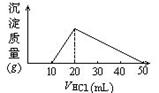 100mL 0.1mol/L AlCl3溶液中,加入1mol/L NaOH溶液v mL后,再滴加1mol/L鹽酸。滴加鹽酸的體積(橫坐標)與生成沉淀的質量(縱坐標)如圖示的關系,則加NaOH溶液的體積為( )![]()