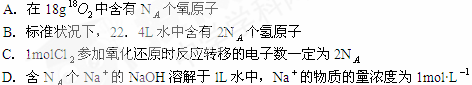 NA表示阿伏伽德羅常數(shù),下列判斷正確的是![]()