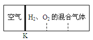 如圖所示,在密閉容器內(nèi)可移動(dòng)活塞K的兩側(cè)分別充入空氣(已知空氣體積占整個(gè)容器容積的1/4) 和H2、O2的混合氣體,在標(biāo)準(zhǔn)狀況下,若將H2、O2的混合氣體點(diǎn)燃引爆,活塞先左彈,恢復(fù)到原溫度后,活塞右滑停留于容器的中央,則原來(lái)H2和O2的體積比可能最接近于( )![]()
