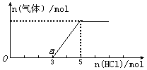 (3)將(2)中一定量的氣體D通入2 L C的溶液中,在所得溶液中逐滴加入稀鹽酸至過量,并將溶液加熱,產(chǎn)生的氣體與HCl物質(zhì)的量關(guān)系如圖所示(忽略氣體的溶解和HCl的揮發(fā)).