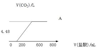 向NaOH溶液中通入CO2氣體,充分反應(yīng)后,在所得溶液中逐滴加入1mol/L的鹽酸,所加鹽酸體積(mL)與產(chǎn)生CO2氣體的體積(L)的關(guān)系如圖所示。