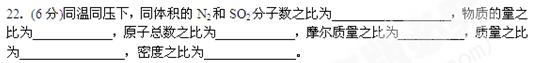 (8分)科學研究表明,由于大量使用氟利昂使南極上空的臭氧層出現(xiàn)空洞。臭氧的化學式為O3。在同溫同壓下,相同質量的O2和O3的物質的量比為 ,體積比為 ,氧原子數(shù)比為 ,密度比為