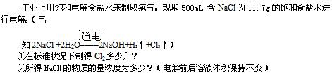 (1)生成的Cl2的體積(標(biāo)準(zhǔn)狀況)。