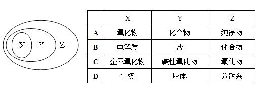 用下圖表示的一些物質(zhì)或概念間的從屬關(guān)系中不正確的是![]()