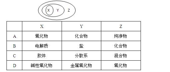 用右圖表示的一些物質(zhì)或概念間的從屬或包含關(guān)系中不正確的是![]()