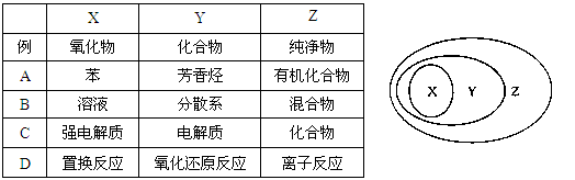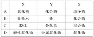 用右圖表示的一些物質(zhì)或概念之間的從屬或包含關(guān)系中不正確的是![]()