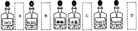 實(shí)驗(yàn)室中的藥品常按物質(zhì)的性質(zhì)、類別等有規(guī)律的擺放,F(xiàn)有部分藥品按某種規(guī)律擺放在實(shí)驗(yàn)桌上,如下圖。做“硫酸的性質(zhì)”的實(shí)驗(yàn)時(shí)