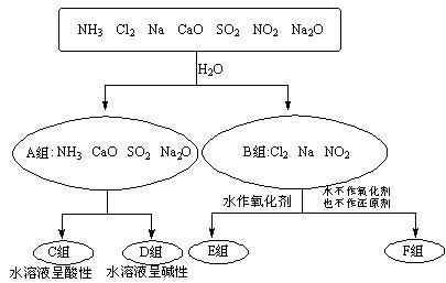 依據(jù)一定的分類標(biāo)準(zhǔn),對某些物質(zhì)與水反應(yīng)情況進(jìn)行分類的分類圖。請根據(jù)你所學(xué)的知識,按要求填空:![]()