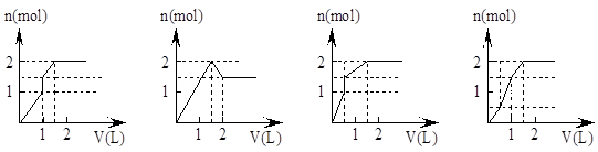 向含1mol HCl和1mol MgSO4的混合溶液中加入1 mo1·L-1Ba(OH)2溶液,產(chǎn)生沉淀的物質(zhì)的量(n)與加入Ba(OH)2溶液體積(V)間的關(guān)系圖正確的是